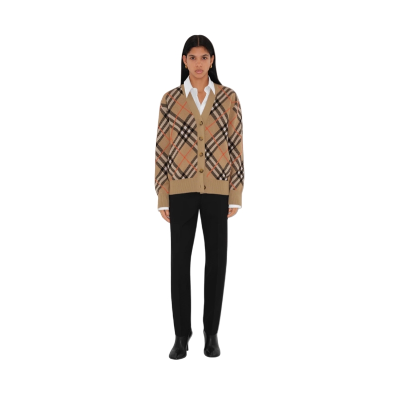 A cardigan in a lightweight wool mohair blend, knitted with the Burberry Check. The V-neck style is cut to a relaxed fit. Part of Burberry Classics, wardrobe foundations with a unique Burberry slant.