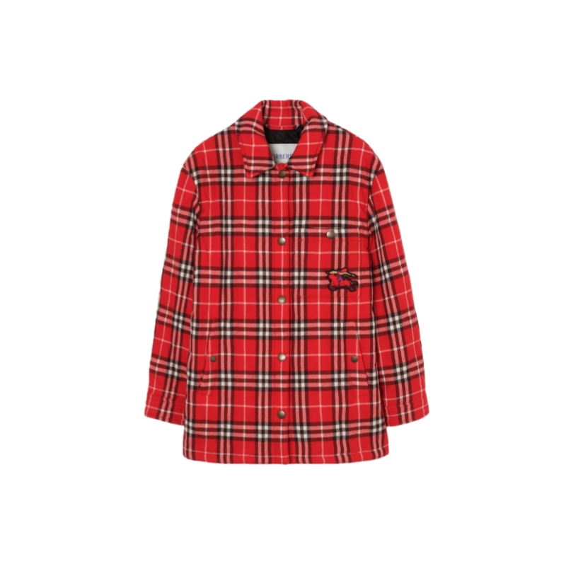 An overshirt in soft wool flannel, woven with the Burberry Check in seasonal crayon red – created as part of our Year of the Horse capsule. The style is cut to a relaxed fit with a quilted lining. Our Equestrian Knight Design is appliquéd at the pocket, embroidered with textural and metallic threads.