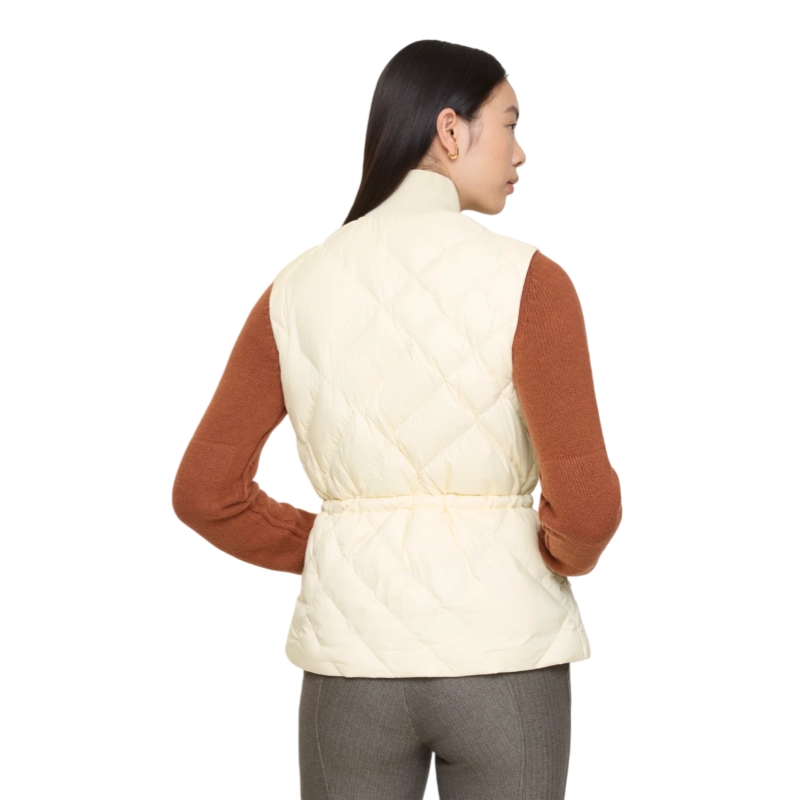 A gilet in lightweight water-resistant nylon detailed with our check-stitch – a new take on quilted stitching inspired by the iconic house code. The style is knitted with a tonal wool-blend collar and finished with an appliquéd leather Knight stamp, an archival motif first seen on Burberry bags in the 1980s. Cut to a regular fit that cinches at the waist and filled with goose down and feathers for warmth.