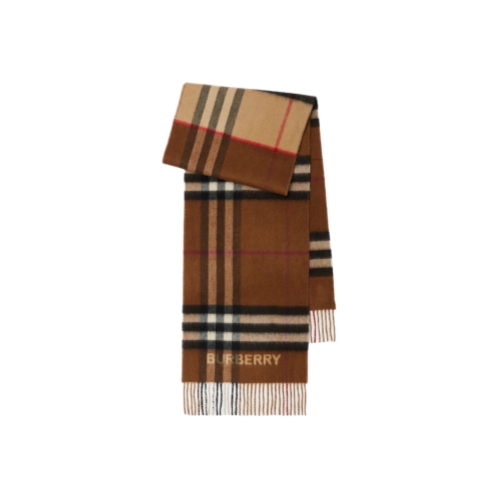 A scarf in double-faced cashmere, woven with the Burberry Check in contrasting colours. Made at a Scottish mill founded in 1797, the fabric is washed in local spring water and brushed with teasels – dried flowers that are drawn along the surface of the cashmere to 'raise' the cloth, creating a natural lustre and ultra-soft finish.