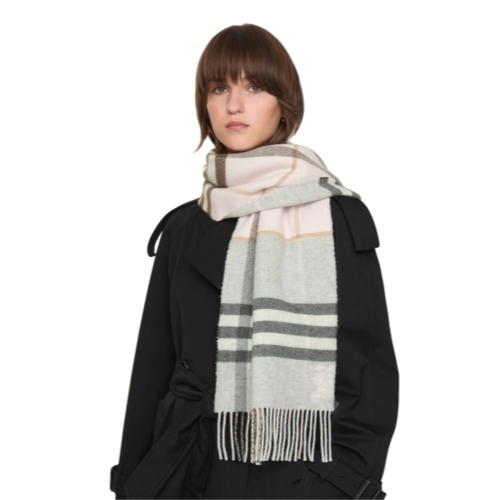 A scarf in double-faced cashmere, jacquard-woven with our Equestrian Knight Design motif and the Burberry Check in contrasting colours. Made at a Scottish mill founded in 1797, the fabric is washed in local spring water and brushed with teasels – dried flowers that are drawn along the surface of the cashmere to 'raise' the cloth, creating a natural lustre and ultra-soft finish.