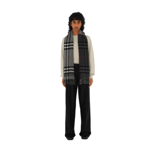 A scarf in double-faced cashmere, woven with the Burberry Check in contrasting colours. Made at a Scottish mill founded in 1797, the fabric is washed in local spring water and brushed with teasels – dried flowers that are drawn along the surface of the cashmere to 'raise' the cloth, creating a natural lustre and ultra-soft finish.