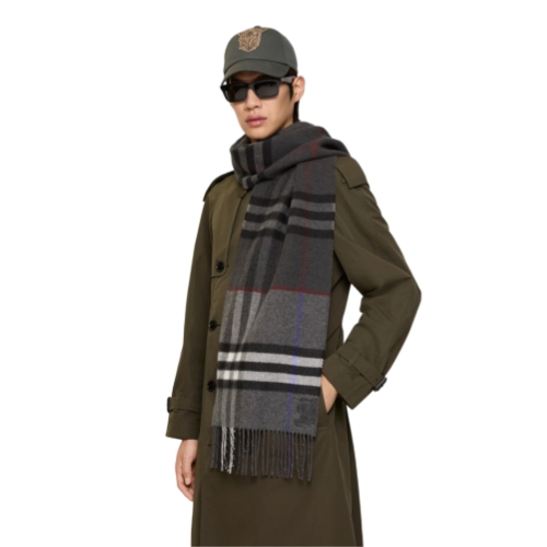 A scarf in double-faced cashmere, jacquard-woven with our Equestrian Knight Design motif and the Burberry Check in contrasting colours. Made at a Scottish mill founded in 1797, the fabric is washed in local spring water and brushed with teasels – dried flowers that are drawn along the surface of the cashmere to 'raise' the cloth, creating a natural lustre and ultra-soft finish.
