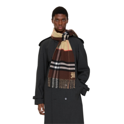 A scarf in double-faced cashmere, jacquard-woven with our Equestrian Knight Design motif and the Burberry Check in contrasting colours. Made at a Scottish mill founded in 1797, the fabric is washed in local spring water and brushed with teasels – dried flowers that are drawn along the surface of the cashmere to 'raise' the cloth, creating a natural lustre and ultra-soft finish.