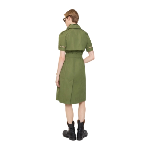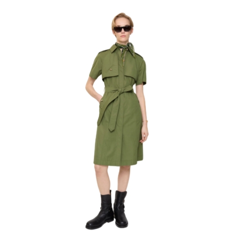 A short-sleeved dress made from cotton poplin. Reworking signature details from our iconic trench, the belted style is detailed with a storm shield, gun flaps and epaulettes. Both sleeves feature adjustable button tabs with Burberry Check taping in signature sand beige.