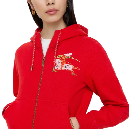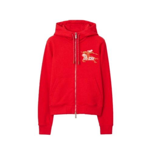 A zip hoodie in lightweight loop-back cotton, cut to a regular fit. The style reworks a seasonal sketch of our Equestrian Knight Design in a textured needle punch technique – the motif is detailed with metallic threads and was created as part of our Year of the Horse capsule.