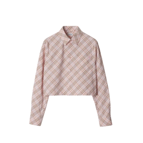A long-sleeved shirt in Italian-woven cotton, patterned with the Burberry Check. The cropped style is cut to a regular fit and embroidered with a tonal B shield, a motif inspired by our Equestrian Knight Design.