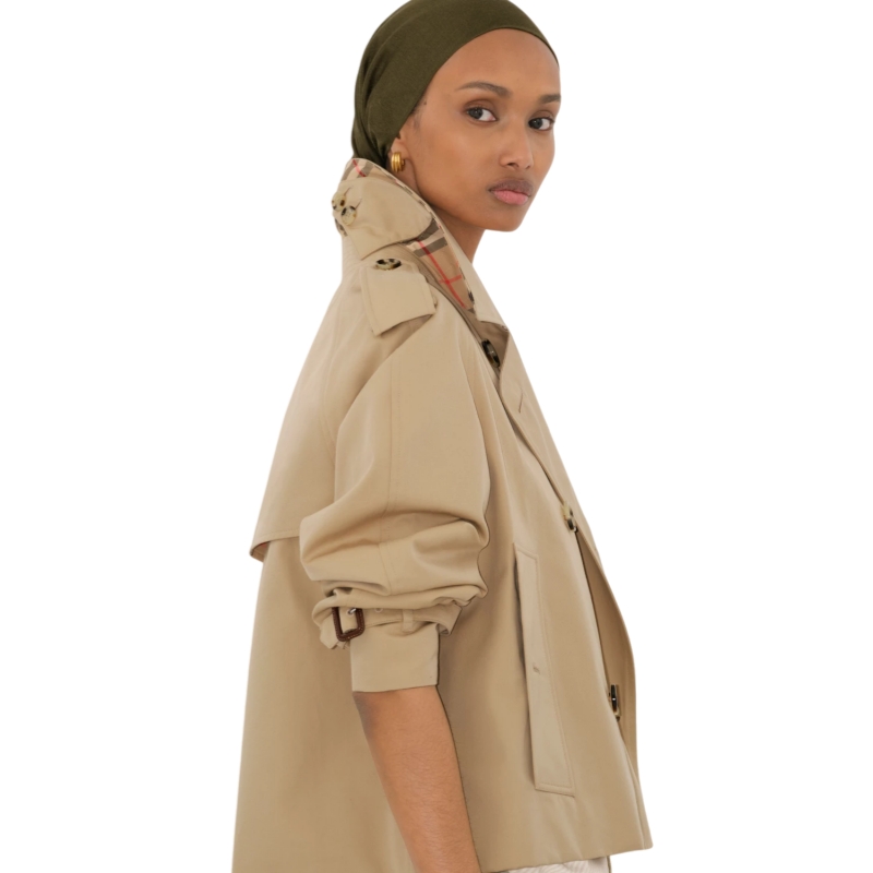 A cropped jacket inspired by our iconic trench and made in England from shower-resistant gabardine. Inside is Burberry Check cotton, used to line our coats since the 1920s. The design is cut to a relaxed fit.