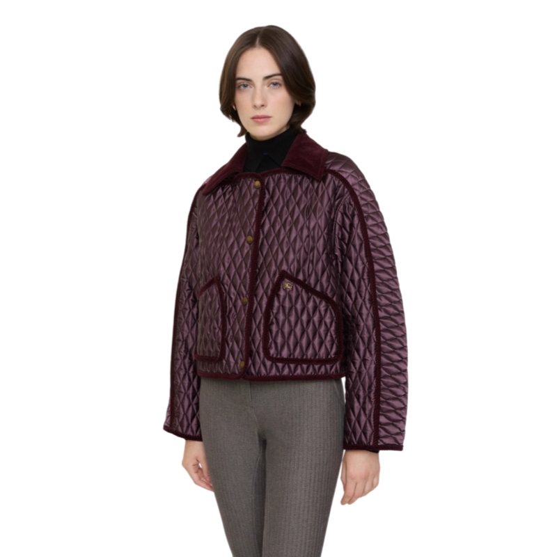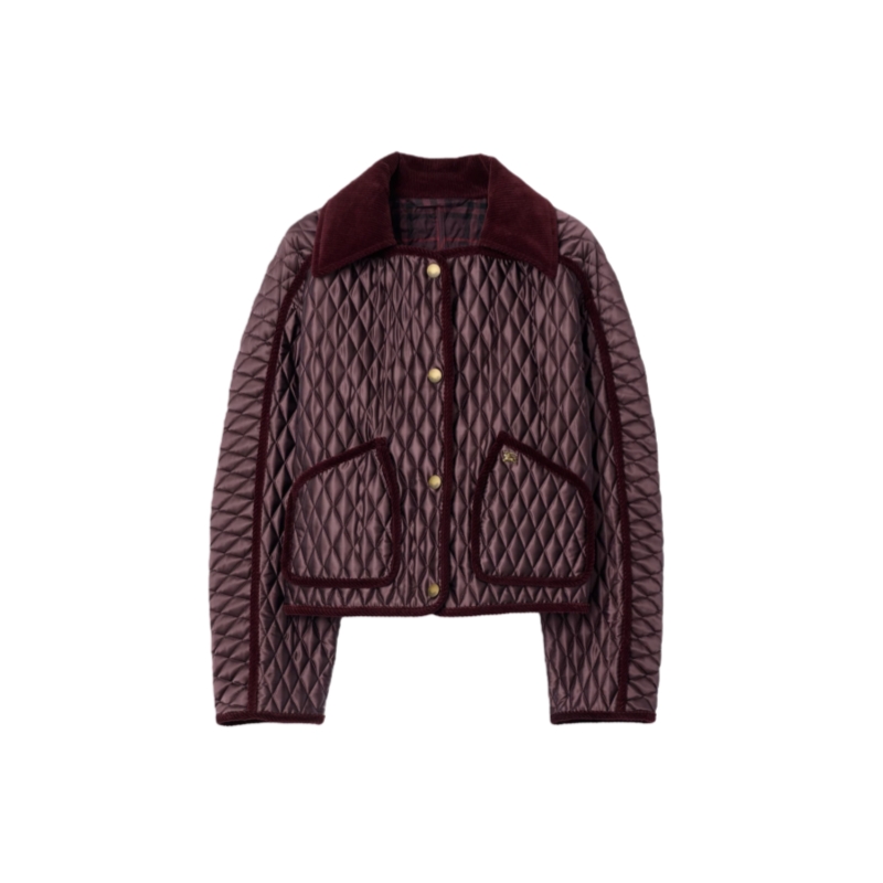Synonymous with the British countryside, the quilted Floriston jacket is reshaped to a boxy silhouette in glossy nylon with tonal corduroy trims. The design is cut to a relaxed fit with raglan sleeves and lined in the Burberry Check.