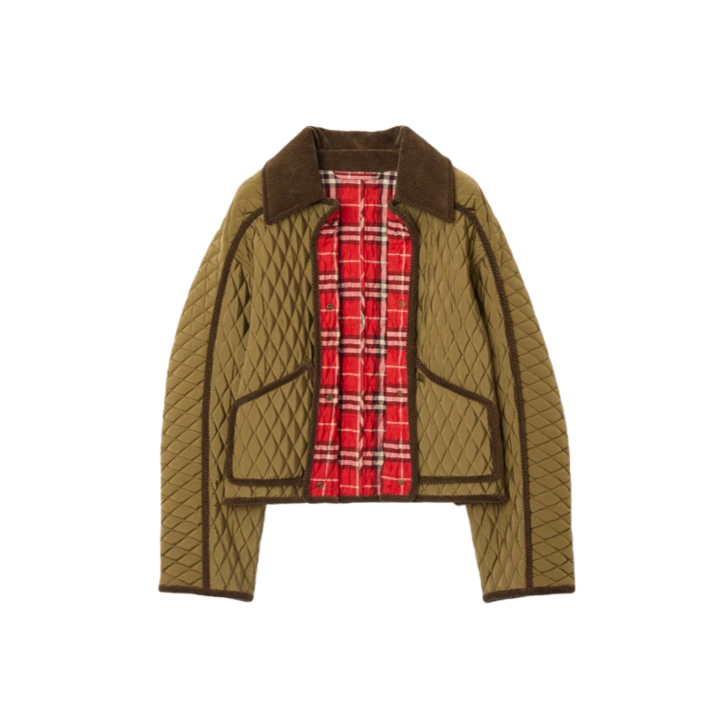Synonymous with the British countryside, the quilted Floriston jacket is reshaped to a boxy silhouette in a lightweight changeant nylon – an archive-inspired fabric woven with contrasting yarns for an iridescent effect. The design is cut to a relaxed fit with raglan sleeves and finished with tonal corduroy trims. Lined with the Burberry Check in a seasonal crayon red, created as part of our Year of the Horse capsule.