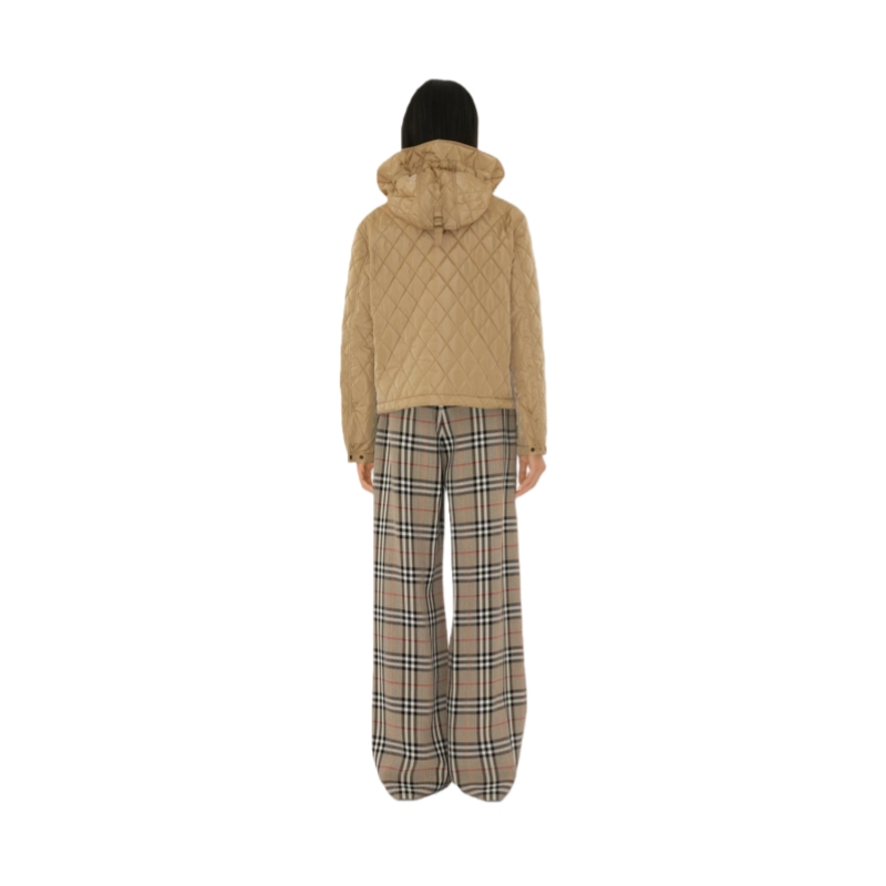 A quilted jacket made from lightweight nylon, cut to a regular fit with a drawcord hood. The cropped style is lined with Burberry Check cotton twill in our signature sand colourway.