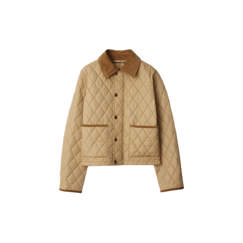 A quilted jacket made from lightweight, water-repellent nylon with a contrasting lining in Burberry Check cotton twill. Cut to a regular fit, the cropped style features a corduroy collar and trims.