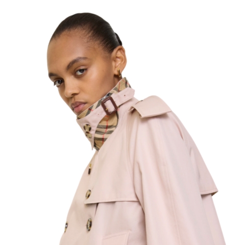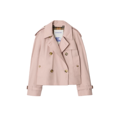A cropped jacket inspired by our iconic trench, made from water-resistant tropical gabardine with a seasonal sugar pink hue. The lightest of our signature fabrics, tropical gabardine was developed by our founder Thomas Burberry for warmer climates. Inside is Burberry Check cotton in archive beige, used to line our coats since the 1920s. Crafted in Castleford, Yorkshire and tailored to a relaxed fit.