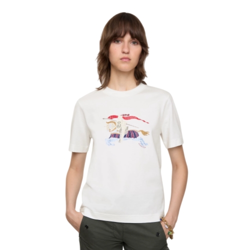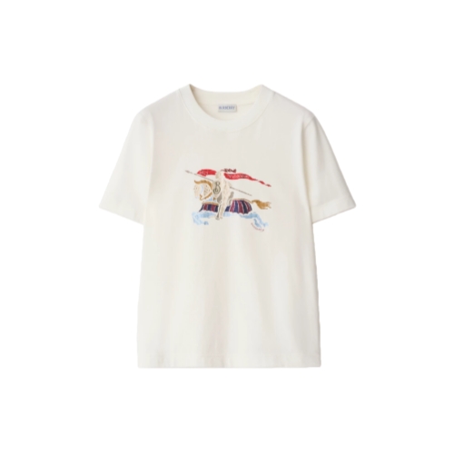A T-shirt in lightweight cotton jersey, cut to a slim fit. The style is printed with a colourful take on our Equestrian Knight Design and embellished with crystals.
