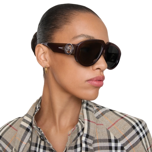– Printed Burberry lettering at temples