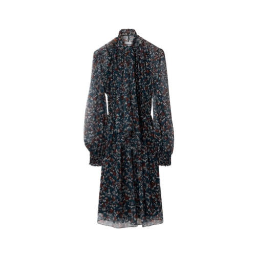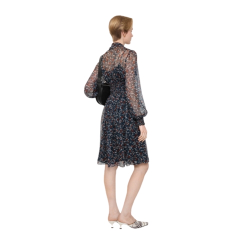 A floaty dress in silk creponne, printed with seasonal ditsy florals – a joyful celebration of British garden flowers. Cut to a regular fit, smocked detailing cinches the waist and gathers at the cuffs create the distinctive balloon sleeves. Finished with scarf ties that can be knotted into a bow and a detachable silk slip dress.