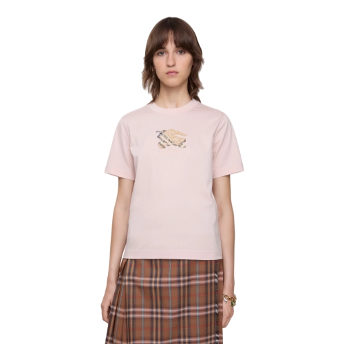 A T-shirt in lightweight cotton jersey, cut to a regular fit. The style is embroidered with our logo and Equestrian Knight Design on a Burberry Check backdrop in signature sand beige.