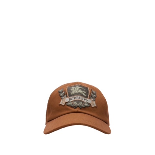 A baseball cap made in Italy from cotton gabardine, appliquéd with an '1856' badge – the year Burberry was founded – and a seasonal crest. Inspired by an archival design, it features an embroidered Equestrian Knight Design, a garland of oak leaves and a banner with our logo.