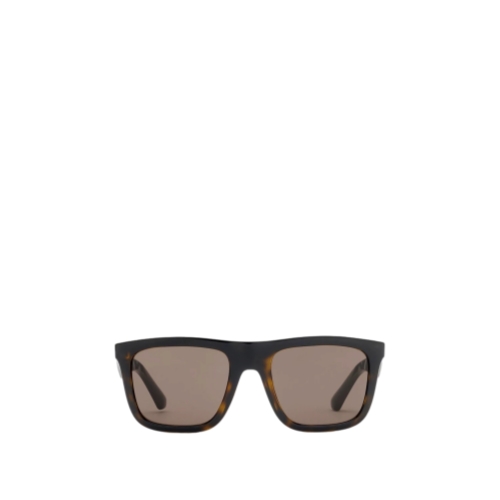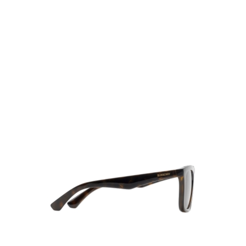 A pair of square-frame sunglasses made in Italy from tortoiseshell nylon, subtly embossed with a check pattern. The temples are printed with the Burberry logo.