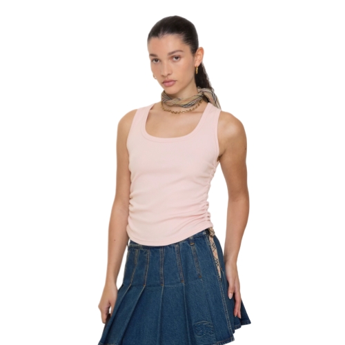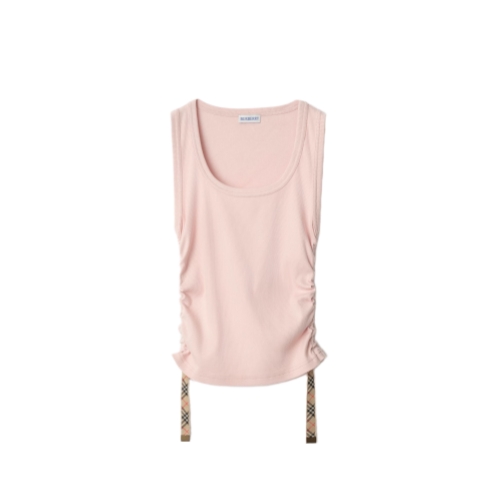 A rib-knit tank top in a cotton blend jersey. Cut to a slim fit, the ruched sides can be adjusted with the Burberry Check side straps and B buckles.