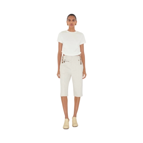 A T-shirt in lightweight cotton jersey, cut to a regular fit and embroidered with a tonal Equestrian Knight Design. The ruched sides can be adjusted with the Burberry Check side straps and B buckles.