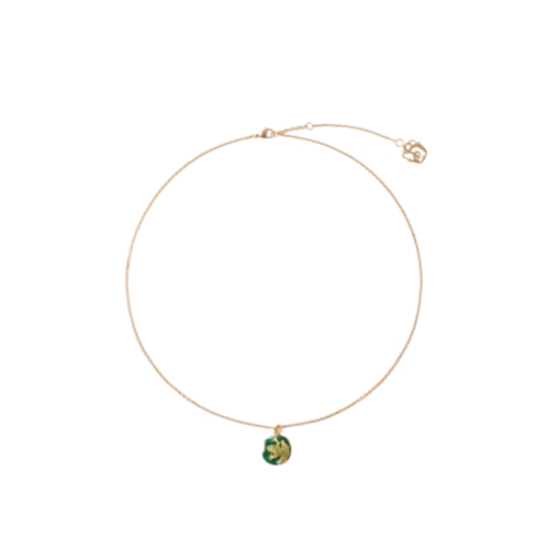 A chain-link necklace with gold plating, made in Italy. Evoking the British countryside, the adjustable design features a frog charm on a malachite lily pad, decorated with cubic zirconia.