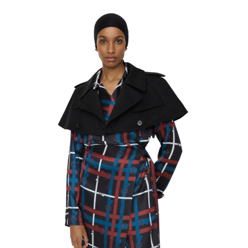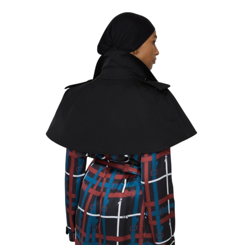 A capelet crafted in Castleford, Yorkshire from shower-resistant cotton gabardine. Inspired by an archival silhouette, the super-cropped style features signature rainwear details, including a gun flap, epaulettes and a shield-shaped throat latch. A statement piece for layering.