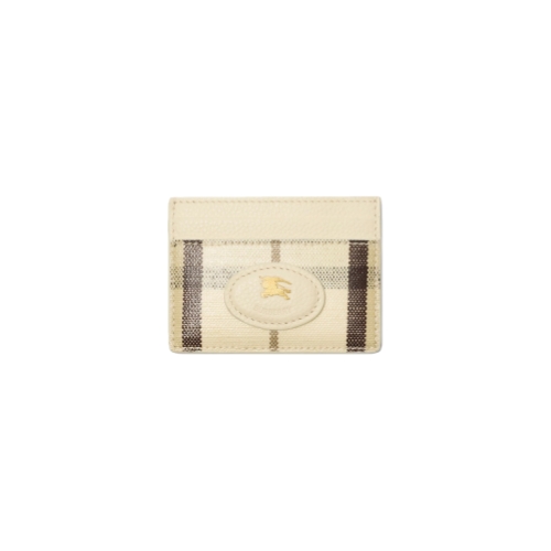 A card case made from a cotton linen blend and grainy calf leather. The fabric is jacquard-woven with the Burberry Check and has a coated finish inspired by rainwear and the outdoors. The design is detailed with our Knight stamp, an archival motif first seen on Burberry bags in the 1980s.