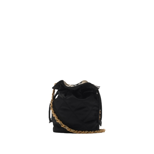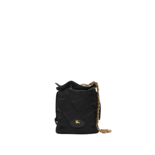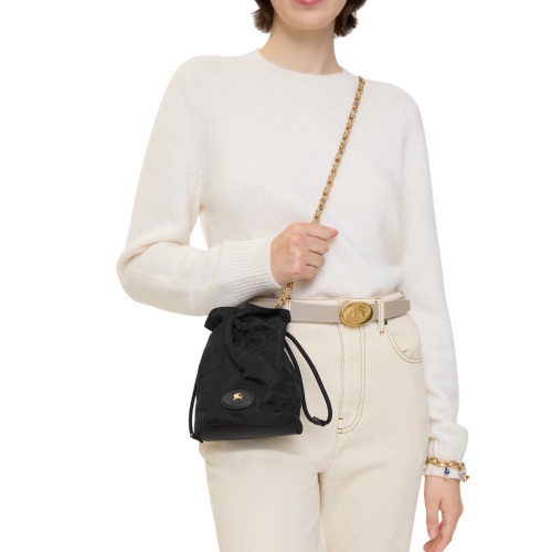 Inspired by country pursuits, a softly structured Horseshoe pouch in quilted nylon with a Burberry Check lining. The design is detailed with leather trims and our Knight stamp, an archival motif first seen on Burberry bags in the 1980s. Carry crossbody or on the shoulder with the chain strap, intertwined with Burberry Check in our signature sand colourway.