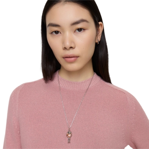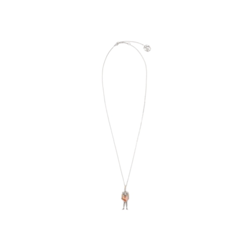 A chain-link necklace with palladium and gold plating, made in Italy. The design features a charm shaped as our romantic Equestrian Knight, holding a two-tone enamel heart wrapped in our signature check.