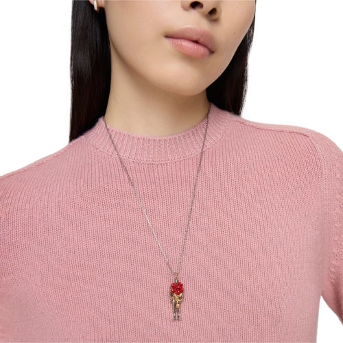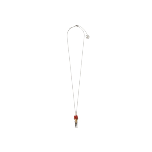 A chain-link necklace with palladium and gold plating, made in Italy. The design features a charm shaped as our iconic Equestrian Knight, holding a bouquet of enamel roses set with cubic zirconia.