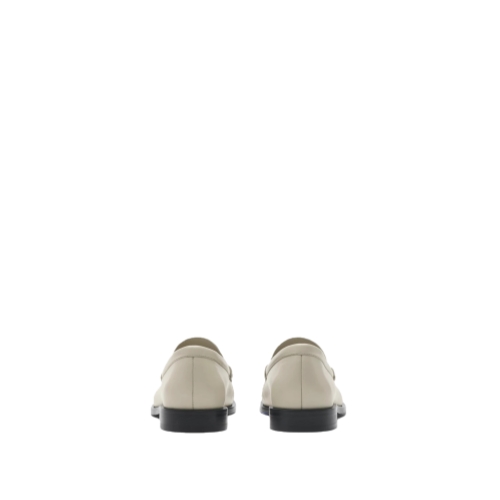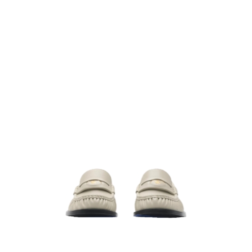 A pair of penny loafers made in Italy from supple calf leather, hand-stitched for a gathered effect. The front is detailed with an enamelled Knight stamp plaque, an archival motif first seen on Burberry bags in the 1980s. The leather sole features a rubber Equestrian Knight Design in signature Knight Blue.