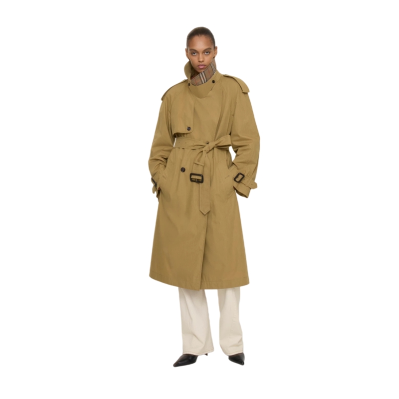 Adding volume to our signature rainwear, the Fitzrovia trench coat is cut from a lightweight cotton blend canvas, treated for a soft hand feel. The A-line style is shaped to a relaxed fit, featuring wider sleeves and a fuller skirt. Raglan construction gives a softer line at the shoulders while an archival trench inspires the curlicue shape of the pockets. Inside is a detachable quilted warmer woven with the Burberry Check, ideal for layering up on colder days.