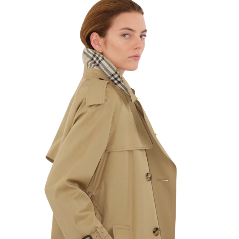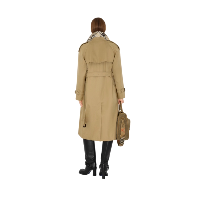 A trench coat made in England from shower-resistant cotton gabardine and lined in Burberry Check. The Castleford is tailored to a regular fit with raglan sleeves.