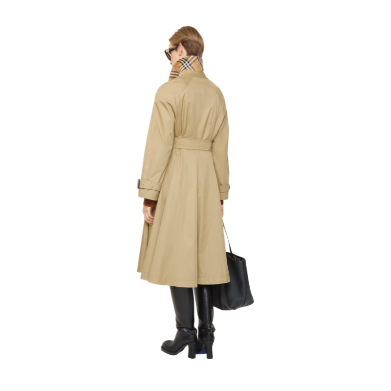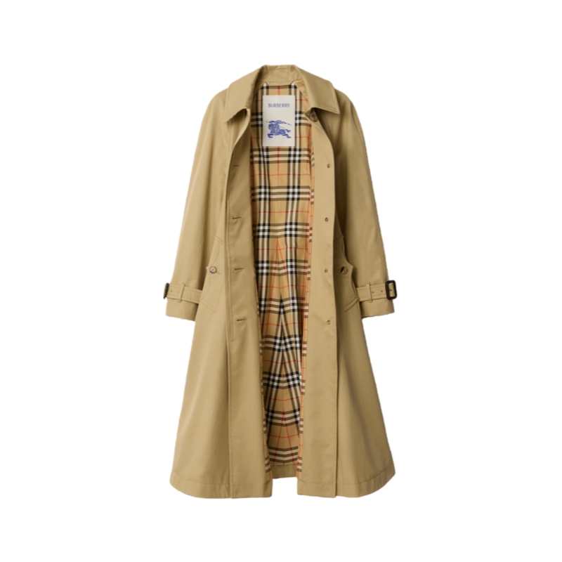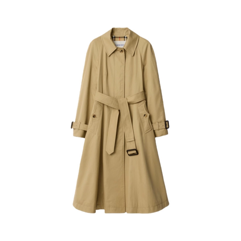 Evolving our signature rainwear silhouettes, the Ellingham fit-and-flare car coat is cut to an A-line shape with wider sleeves and a fuller skirt. Made in Yorkshire from water-resistant gabardine and treated for a soft finish, the design features raglan sleeves for a relaxed look and curlicue-shaped pockets, inspired by an archival trench. Inside is Burberry Check cotton lining in signature sand beige.