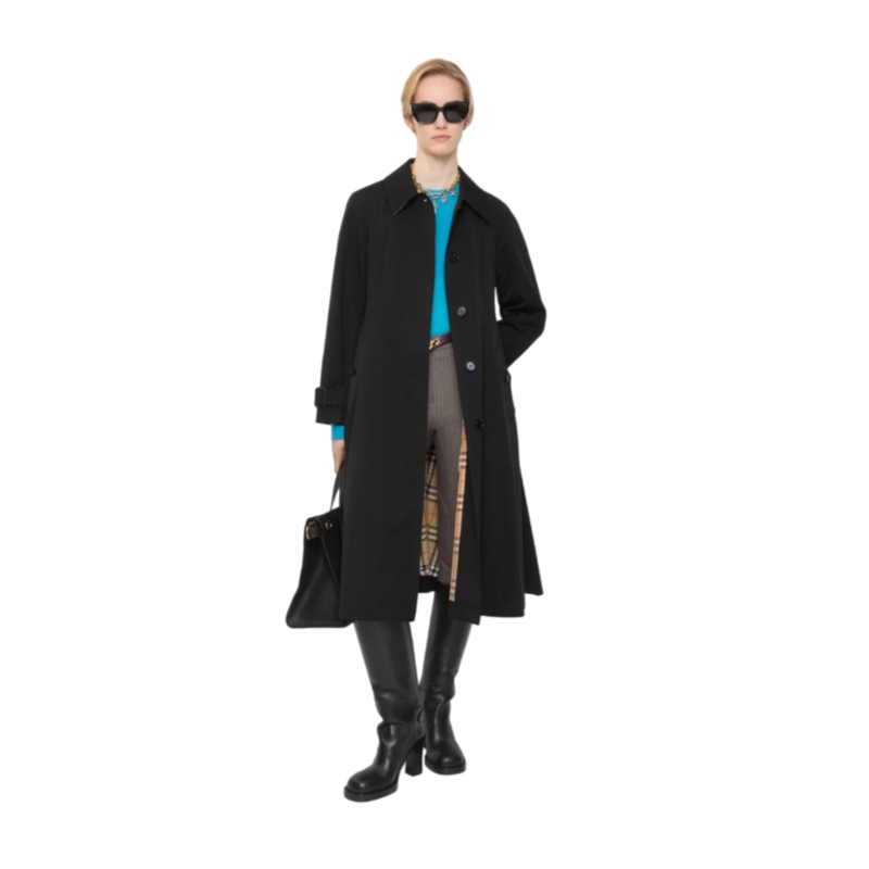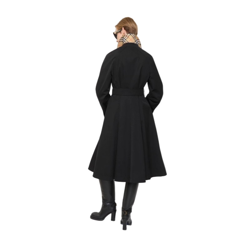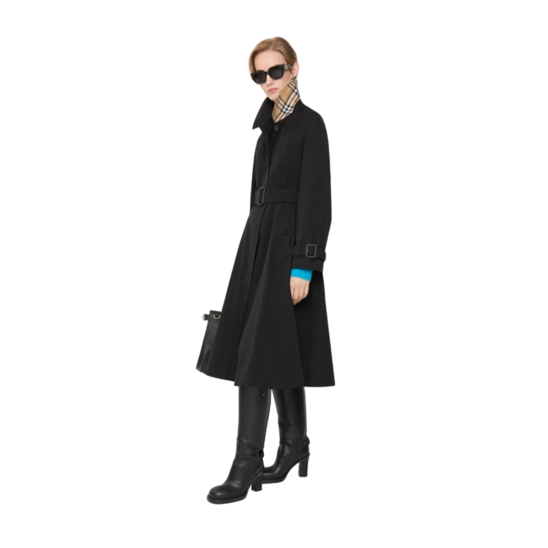 Evolving our signature rainwear silhouettes, the Ellingham fit-and-flare car coat is cut to an A-line shape with wider sleeves and a fuller skirt. Made in Yorkshire from water-resistant gabardine and treated for a soft finish, the design features raglan sleeves for a relaxed look and curlicue-shaped pockets, inspired by an archival trench. Inside is Burberry Check cotton lining in signature sand beige.