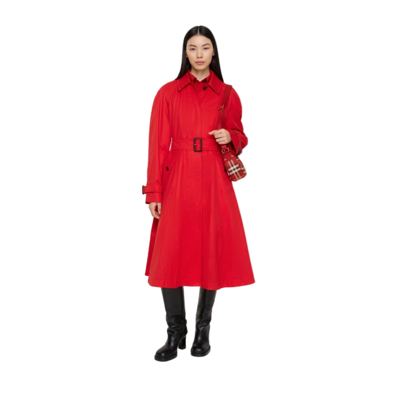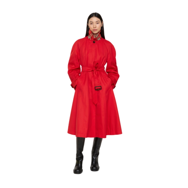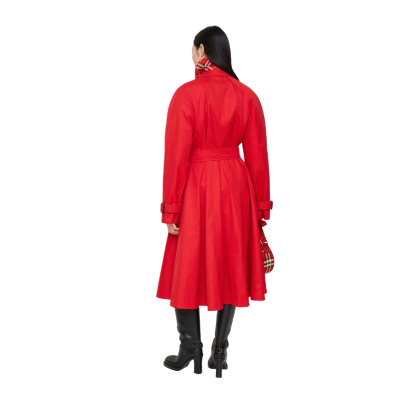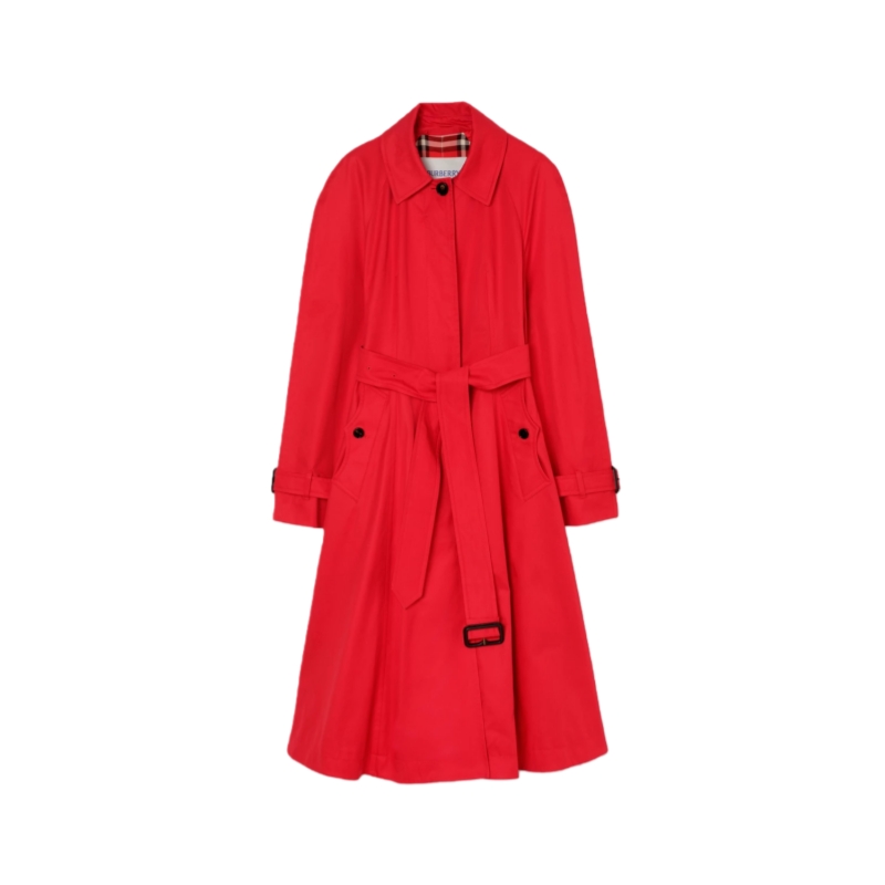 Evolving our signature rainwear silhouettes, the Ellingham fit-and-flare car coat is cut to an A-line shape with wider sleeves and a fuller skirt. Tailored from water-resistant gabardine and treated for a soft finish, the design features raglan sleeves for a relaxed look and curlicue-shaped pockets, inspired by an archival trench. Inside is Burberry Check cotton lining in coordinating crayon red.
