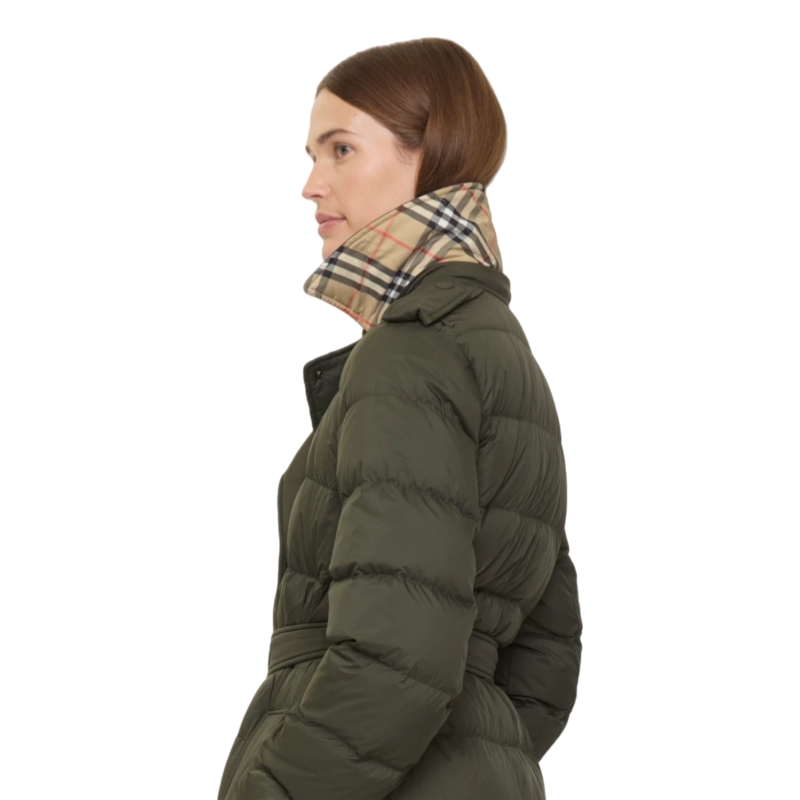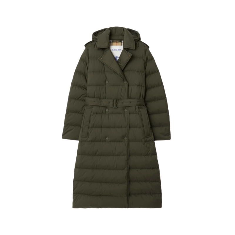 Inspired by the Burberry trench, a puffer coat in nylon filled with goose down and feathers. The double-breasted design is cut to a regular fit with signature epaulettes and a detachable B buckle belt. Adapt the silhouette by removing the hood and pop the collar to reveal a flash of Burberry Check.