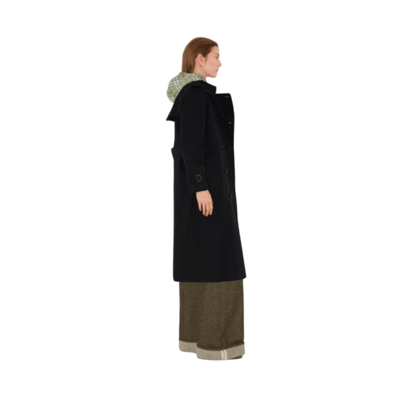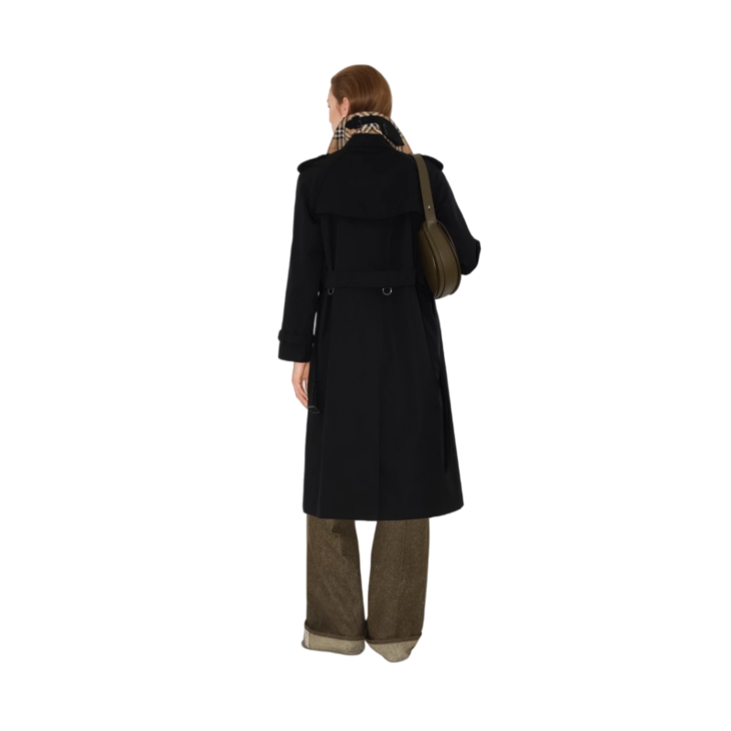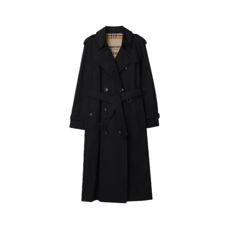 Inspired by the original Burberry trench coat, the Waterloo is cut to a long length with soft, curved shoulders. Crafted in England from shower-resistant cotton gabardine, the double-breasted silhouette is finished with a belted waist, Burberry Check lining, and archive details. Its heritage proportions are designed for fluid movement, making the style ideal over tailoring and layers.