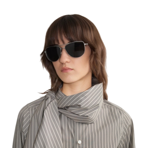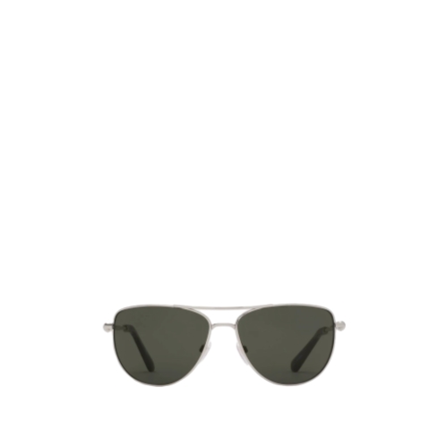A pair of square-frame aviator sunglasses made in Italy from metal with acetate temple tips. The slender temples are subtly engraved with our logo, Equestrian Knight Design, rook chess piece and rose hallmarks.