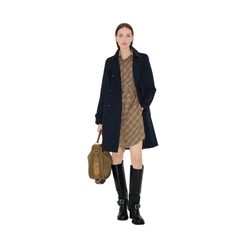 A refined take on Burberry’s rainwear heritage, the Chelsea trench coat is cut close to the body for a clean, modern silhouette. The fitted style is made in England from shower-resistant cotton gabardine and detailed with leather-wrapped buckles. Tailored to a slim fit, the double-breasted design has a structured shoulder line, narrow sleeves, and a defined waistline. Wear it closed using the belt or open over dresses and separates to showcase the iconic check lining.