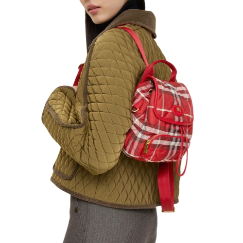 Inspired by country pursuits, the Horseshoe backpack is made from quilted nylon woven with the Burberry Check in seasonal crayon red – created as part of our Year of the Horse capsule. The compact design is detailed with leather trims and our Knight stamp, an archival motif first seen on Burberry bags in the 1980s. Use the D-ring at the side to personalise with charms.
