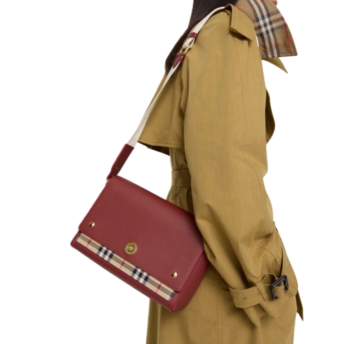 An archive-inspired crossbody bag made in Italy from calf leather and Burberry Check cotton in signature archive beige. The Note is finished with a logo-engraved closure and lined with cotton. Carry across the body or wear on the shoulder using the adjustable strap.