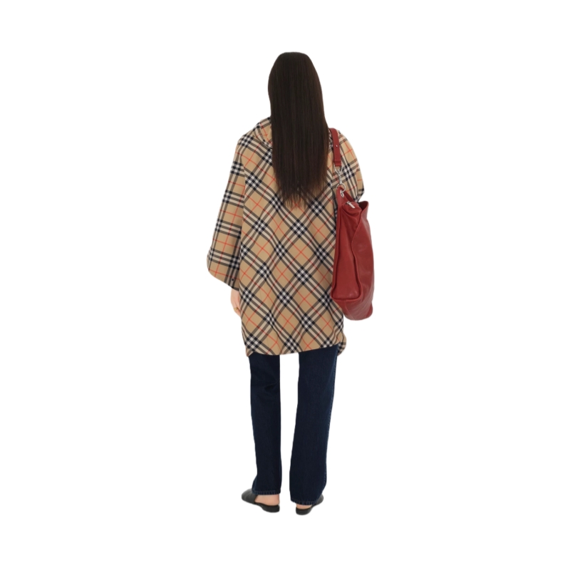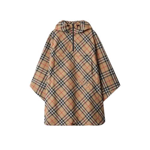 A hooded cape made in Italy from twill woven with the Burberry Check. The style can be fully packed away into the front zip pocket and is appliquéd with the Equestrian Knight Design. Part of Burberry Classics, wardrobe foundations with a unique Burberry slant.