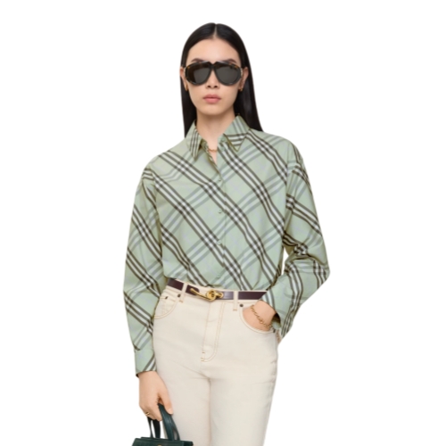 Our signature Burberry Check shirt, refreshed in a seasonal seafoam green. The classic button-up style is tailored to a relaxed fit from soft cotton, woven with the iconic house code.