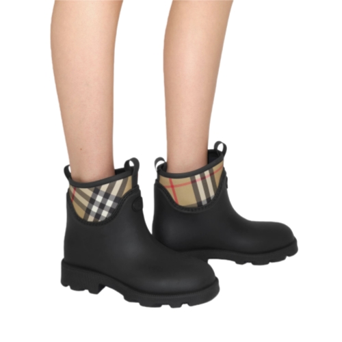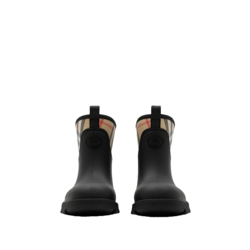 Rain boots made in Italy from rubber and a nylon blend, woven with the Burberry Check in our signature sand colourway. The front of the boot features our Knight stamp, an archival motif first seen on Burberry bags in the 1980s.