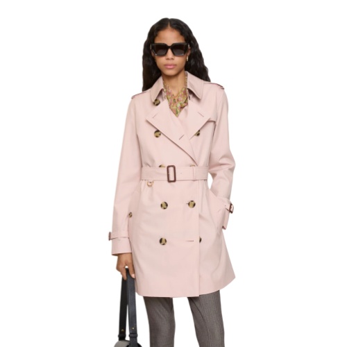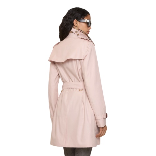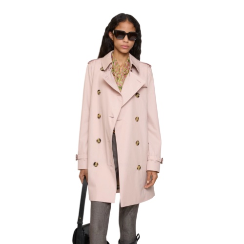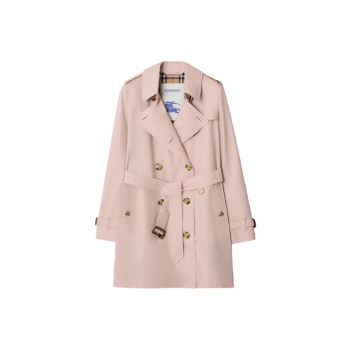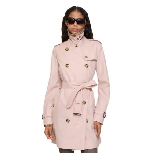 The iconic Burberry trench coat, refreshed in water-resistant tropical gabardine with a seasonal sugar pink hue. The lightest of our signature fabrics, tropical gabardine was developed by our founder Thomas Burberry for warmer climates. Inside is Burberry Check cotton in archive beige, used to line our coats since the 1920s. The Kensington is made in Castleford, Yorkshire and cut to a regular fit with set-in sleeves.