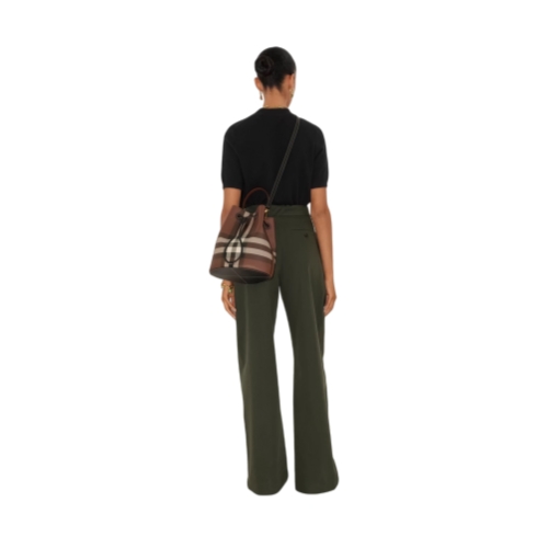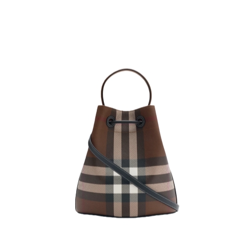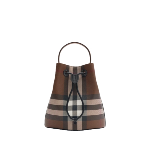 A bucket bag made in Italy from a coated cotton blend printed with the Burberry Check. The softly structured shape is lined in a cotton blend and features a drawcord closure with a leather shield toggle. Carry by the top handle or wear as a crossbody bag using the adjustable strap