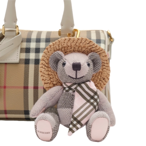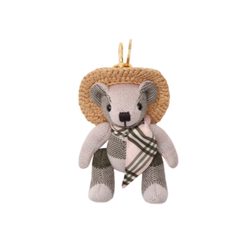 Our signature teddy charm in check wool, wearing a Burberry Check satin scarf and raffia hat – a nod to summer days spent in English country gardens. The design features moveable arms and legs. This is not a toy and is intended for collectors of 14 years of age and above.