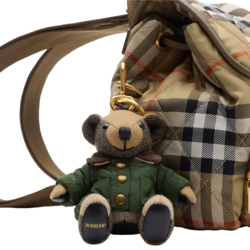 Our signature teddy charm in check cashmere, wearing a quilted jacket topped with a corduroy collar – a silhouette synonymous with Burberry and the British countryside. The design features moveable arms and legs. This is not a toy and is intended for collectors of 14 years of age and above.